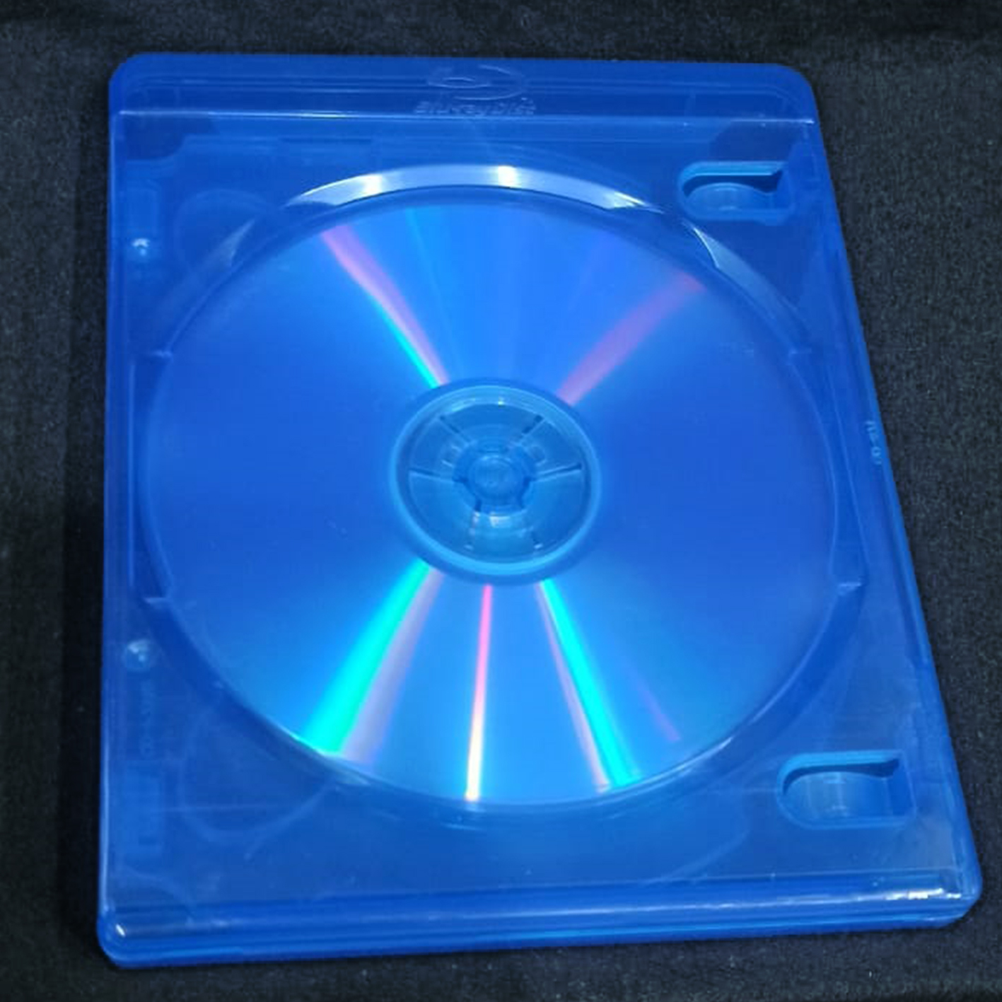 Caja tipo Blu-ray delgada de 7 mm en color azul translúcido, diseñada para almacenar dos discos (Blu-ray, DVD o CD) en un solo estuche compacto. Perfecta para presentaciones profesionales, colecciones especiales o respaldo de archivos.
