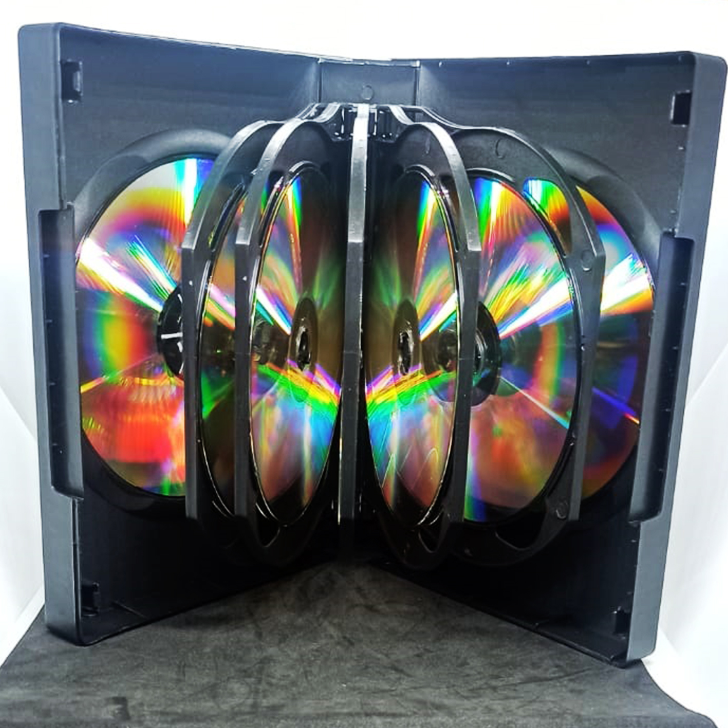 Caja tipo DVD fabricada en plástico negro resistente, con grosor de 39 mm, diseñada para guardar hasta 10 discos en un solo estuche. Ideal para archivar colecciones, respaldos o proyectos profesionales. Su estructura sólida y cierre seguro garantizan la protección del contenido.